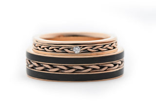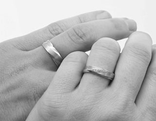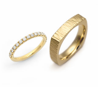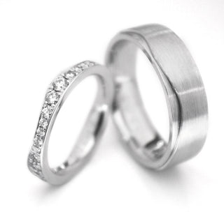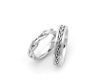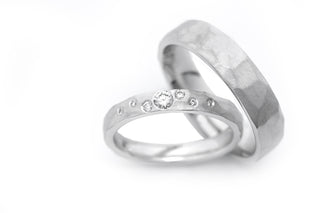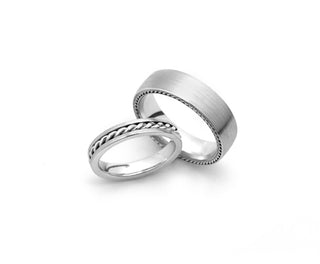 Vous aurez l’occasion bien entendu de choisir un modèle existant, mais vous pourrez aussi le personnaliser selon vos désirs et avec notre aide. Le sur mesure nous permet d’accorder d’une manière plus au moins marquée la concordance entre les deux bagues. Nous pouvons y glisser un simple rappel stylisé et symbolique sur l’une et l’autre ou, à l’inverse, faire deux bagues très similaires.